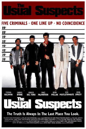 Casting my mind way back, there was one occasion that stuck in my mind specifically, and it was seeing The Usual Suspects in 1995. I was a student in Bath at the time, and it was showing at the main cinema, including one of their occasional midnight screenings. It seemed like a good idea at the time, and I can remember being completely entranced by the poster. Other than a brief interview with Gabriel Byrne I’d seen on TV, and glancing over a four star review in Empire that I hadn’t read properly, I knew nothing about this at all.