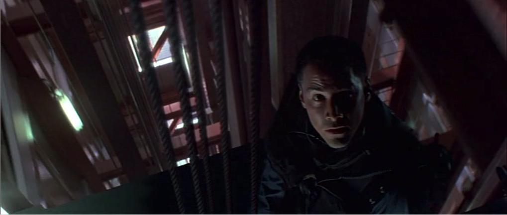 If you have an action film in or around a building, and one character is stalking the others, it’s inevitable that, sooner or later, said character will climb on top of a lift, and also that the lift will end up going to the top floor. Bond here has to duck, although the lift is moving so slowly (and with a safety rail) that the chances of a squashed secret agent are pretty slim. John McClane is perhaps the most famous example of what the Germans might call liftstandentoppenquickducke, in seminal action movie Die Hard, but by the Nineties bad guys had become wise to the tricks. In Speed, the first third of the film is spent pulling people out of lifts or clambering around on top of them, until Howard Payne becomes wise to the shenanigans and forces Jack Traven to jump down by sending the lift to the top floor.