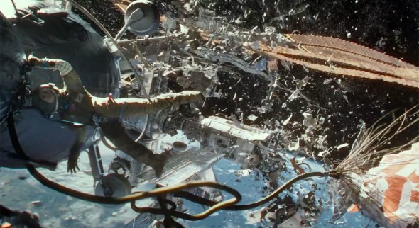 Space. The final frontier. A frontier as crowded as the only town on “Get Your Free Gold” day, judging by Gravity, which manages to position a telescope and two space stations in the same orbit and within barely a mile of each other. Maybe it’s just the best spot to be in orbit, safe from all that debris which also manages to be in exactly the same horizontal and vertical plane as the telescope and the two space stations. Maybe the intention is that those space stations are available for everyone, because it seems really easy to fly them; unlike when you get a hire car and it takes you half an hour to work out how to work the windscreen wipers, thankfully the Russians and the Chinese build their space stations in such a similar manner that any passing astronaut can work out how to get them going with just a quick flick through the manual. All of a sudden, space travel doesn’t seem that complex, does it?