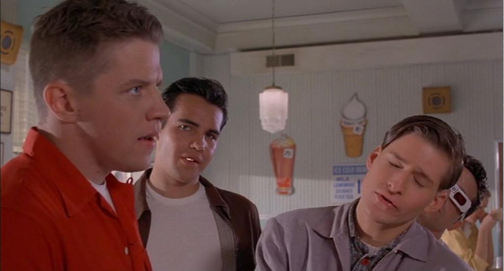 46. The physical comedy isn’t confined to Michael J. Fox, of course. Crispin Glover’s George gets a chance to shine when entering the diner to approach Lorraine, and the density / destiny line manages to convey a believability to the relationships and the situation in a single line of dialogue. (Plus reactions, of course.) Most movies today would give their right arms to be so effortless.